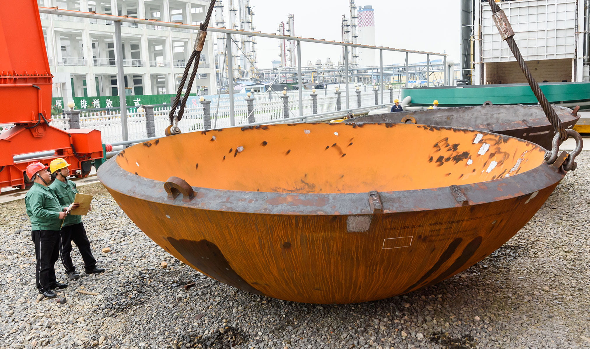 從最初500T壓機(jī),靠一錘一錘砸出封頭的小作坊,到現(xiàn)在直徑7500mm,厚度400mm以下整體一次成型,